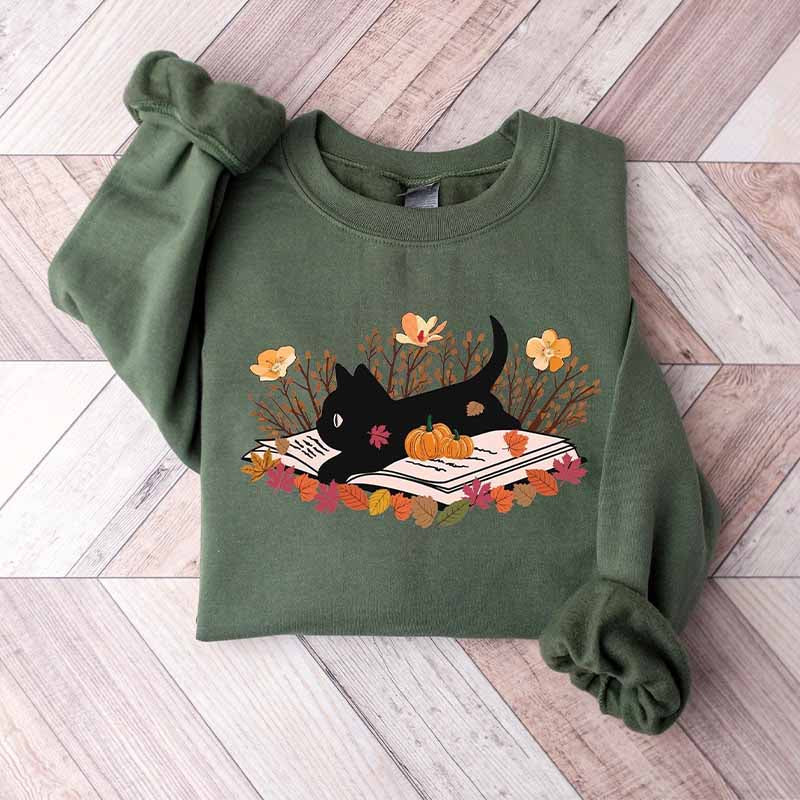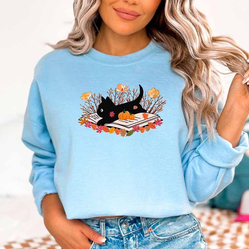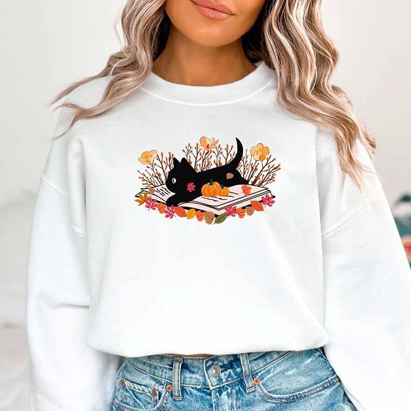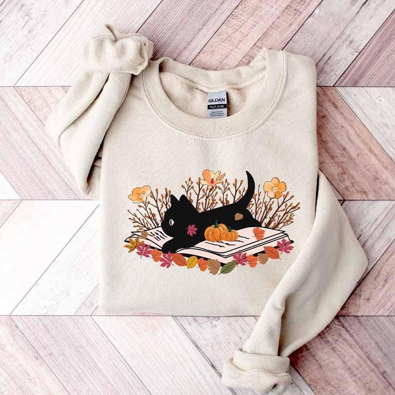 Black Cat Book Halloween Autumn Sweatshirt