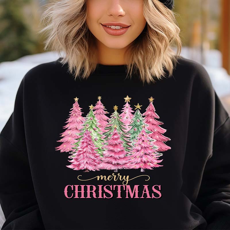 Pink Merry Christmas Trees Bright Sweatshirt